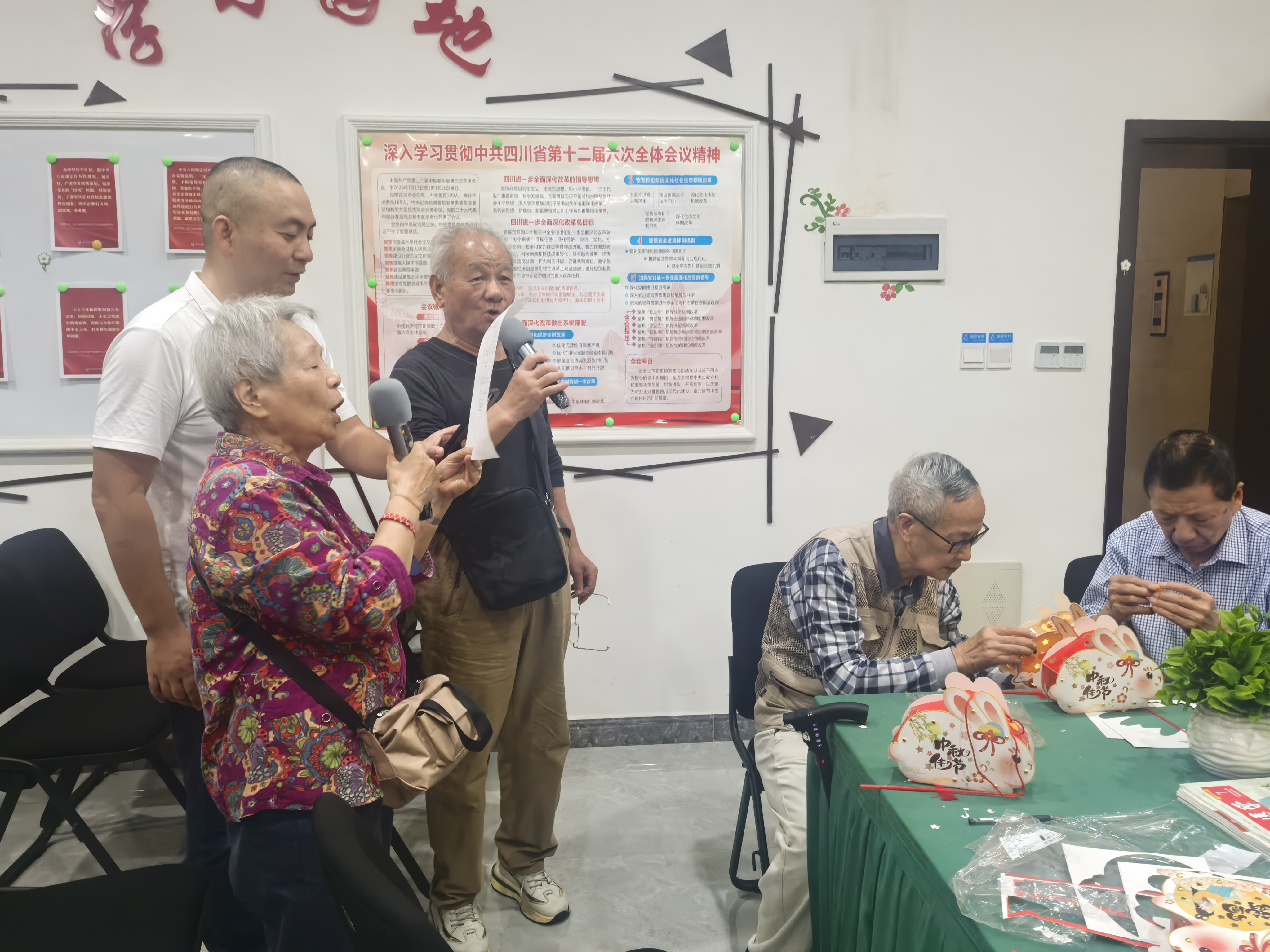 随后进行的“中秋兔灯”制作环节则为活动增添了浓浓温馨与雅趣。工作人员提前备齐制作材料与示范样品,并细致讲解制作流程。老同志们兴致盎然,纷纷动手实践,彼此协作交流。在动手动脑之间,既体验到传统手工艺的乐趣,也深切感受到中华优秀传统文化的隽永魅力。