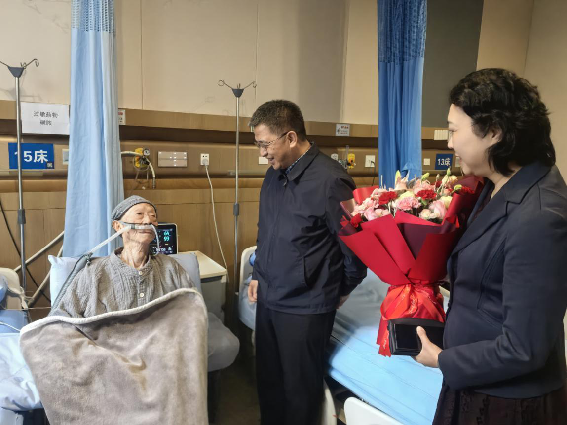 菊颂金秋,情暖重阳。在传统敬老佳节重阳节到来之际,为弘扬尊老、敬老、爱老的优良传统,表达对离退休老干部的深切关爱与崇高敬意,10月27日,局党组书记、局长谢民,局党组成员、副局长、机关党委书记张肃带领离退休处同志走访慰问住院离休干部以及行动不便的高龄退休干部,为他们送去组织的殷切关怀和节日的诚挚祝福。