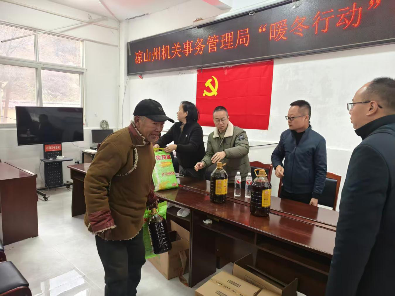 凉山州机关事务管理局赴木里县李子坪乡白草坪村开展2025年度“暖冬行动”慰问活动