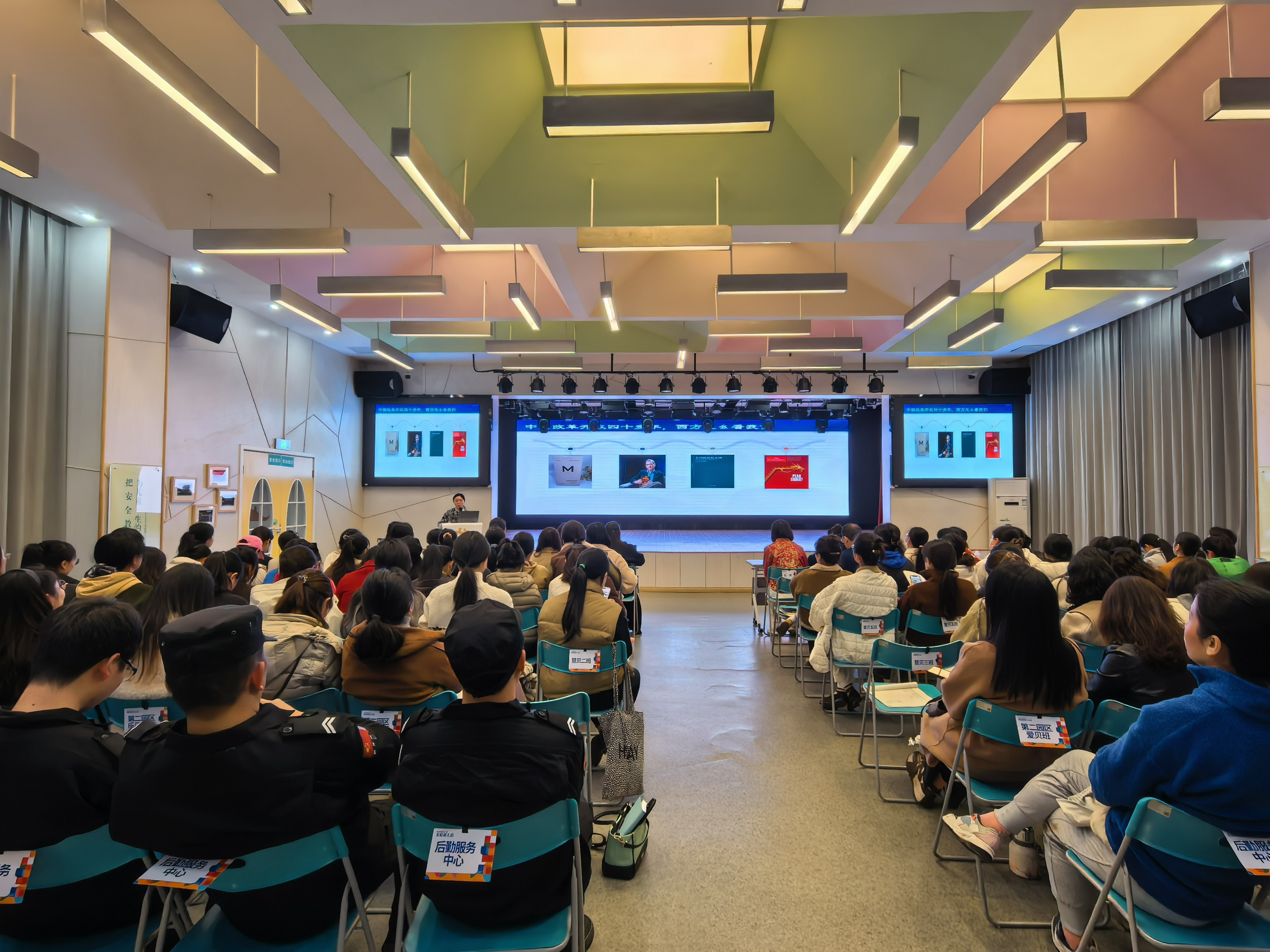 会议特邀四川省委党校(四川行政学院)教授禹竹蕊做专题辅导,对党的二十届四中全会精神进行系统解读,引导教职工在理论学习中夯实教育理念,在时代脉搏中明晰行动方向。全体教职工共同观看专题片《致敬2025每一个时光里的奋斗者》,在光影回溯中感悟教育初心,凝聚“幼有优育”的奋斗力量。