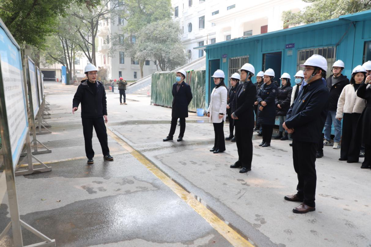在项目现场,项目驻点同志详细介绍了项目的立项背景、维修排危必要性、项目总体设计方案、最新进展、项目推进中存在困难及解决措施等相关情况;施工单位介绍了施工组织、技术难点攻克、安全生产管理、文明施工等情况。通过深入一线现场观摩,各位党员同志对机关办公用房保障提质增效、维修项目攻坚克难、党员先锋作用更好发挥等方面有了更直观和深刻的认识。